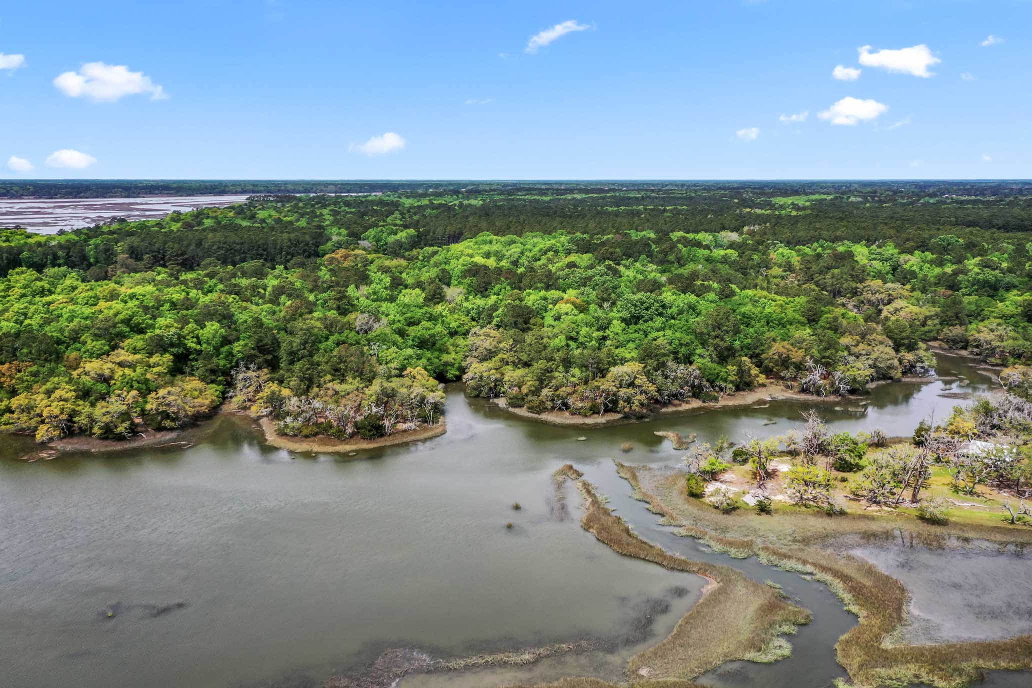 1 Frisco Lane presents a rare opportunity to create a private rural retreat on the coveted west end of Johns Island. Spanning approximately 34 acres--including 30 acres of high ground--the property offers nearly a mile of marsh and water frontage on Church Creek. Sweeping southwestern views overlook Wadmalaw Island and capture breathtaking sunsets. The property supports abundant wildlife--including deer and turkey-- along with wading birds, songbirds and ospreys. A winding wooded drive leads through a pristine mix of pine and hardwood forest, as well as scenic tidal sloughs, to a high bluff with remarkable Lowcountry vista views.